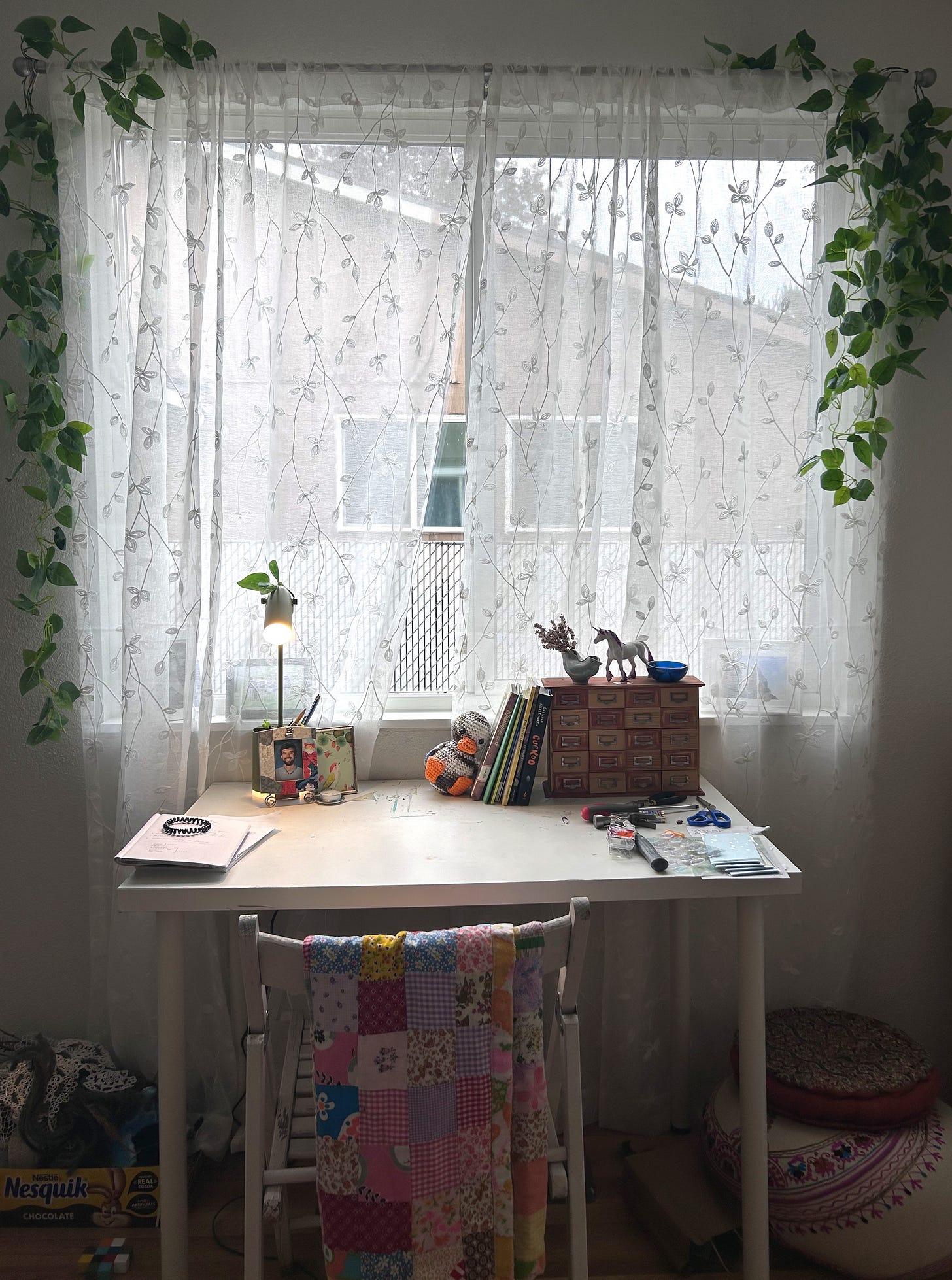 This has mostly been prompted by preparing the manuscript for The Small Particulars (my upcoming poetry collection, but more on that below!), and a bit by our recent move to a new home. At New House (creatively named, I know), I have my own little studio space for the first time ever, and beginning to arrange and decorate it has brought me enormous joy. Suddenly, there is a place that I never have to tidy, a room where I can leave everything out (though, I don’t know, Alec might argue that that is most rooms in our home…), a place that I can decorate and define and delight in just absolutely for me.